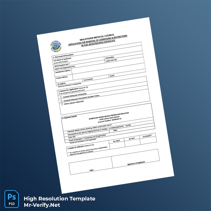 Malaysia Malaysian Medical Council Removal of Conditions and Restrictions Registration Certificate Template