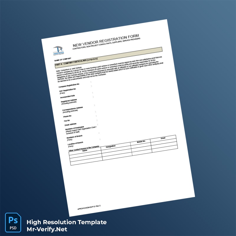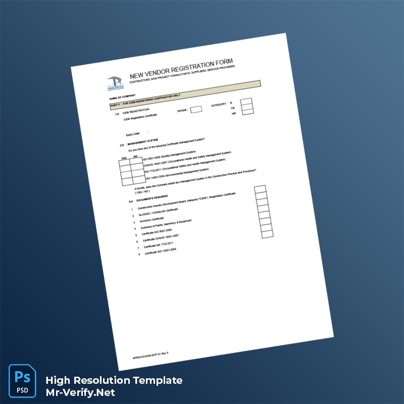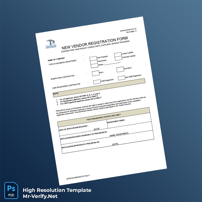 Don’t let cumbersome paperwork stall your operations. Experience how the Malaysia ProLintas Vendor Registration Form Word and PDF Template transforms vendor onboarding into a streamlined, professional, and compliant process. Secure your template now and empower your business with reliable, editable registration certificates designed for success.