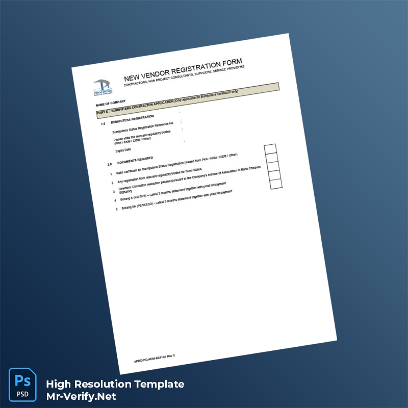 Be the first to review “Editable Malaysia ProLintas Vendor Registration Form Word and Pdf Template 7 page”