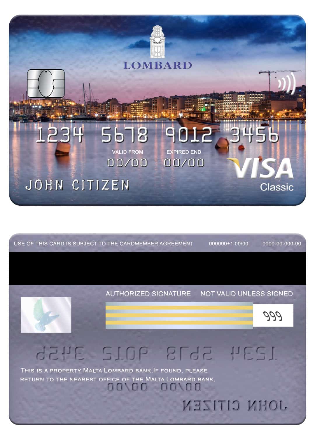 Editable Malta Lombard bank visa classic card Templates in PSD Format