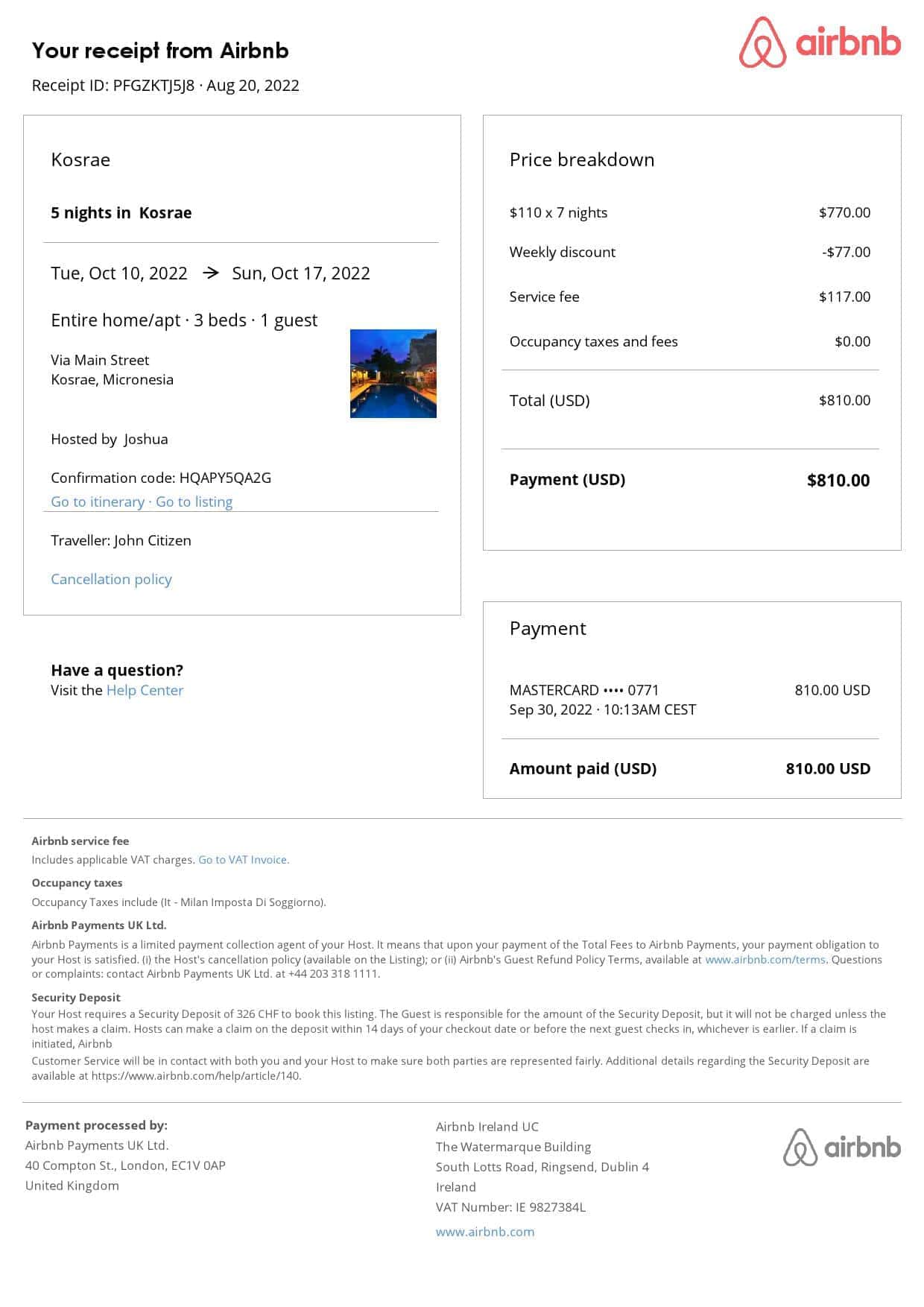 • Perfect for visa applications, proof of accommodation, and showing expenses