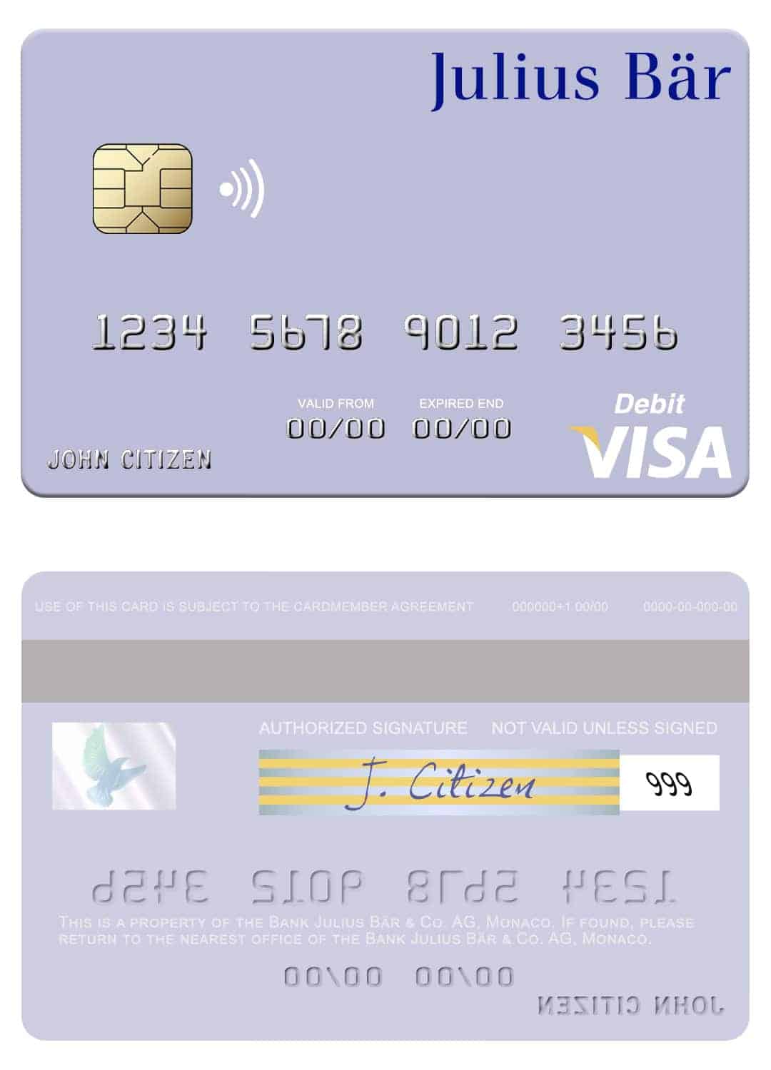 Do you want to use a fillable visa debit card that truly reflects your authority and is realistic? Look no further! Our customizable Monaco Julius Bär & Co. AG bank visa debit card templates in PSD format are the perfect solution.