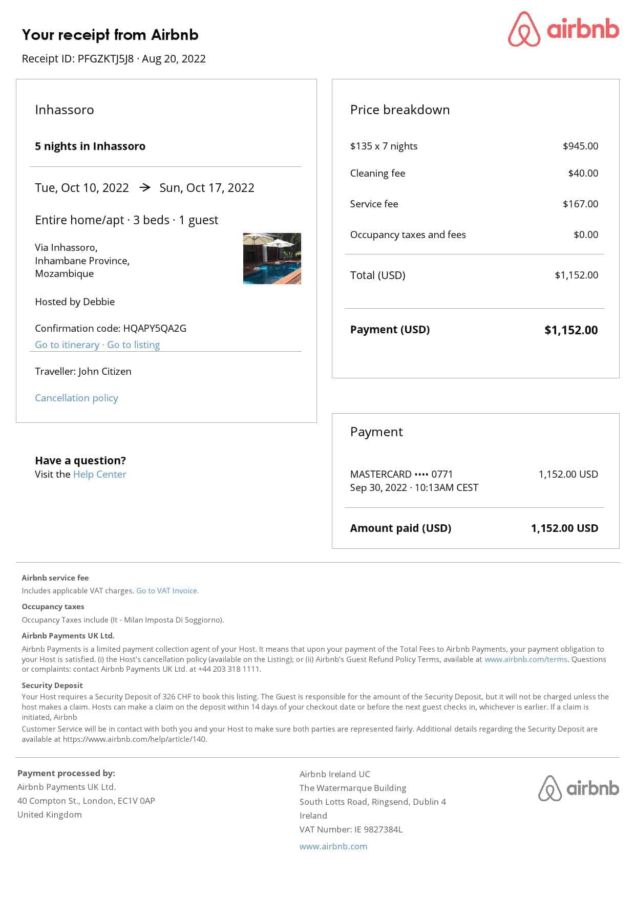 - Perfect for visa applications, proof of accommodation, and showing expenses