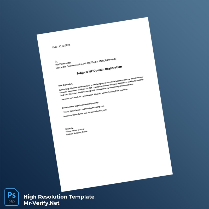 Professional Nepal Domain Registration Cover Letter Template for Seamless Business Processes