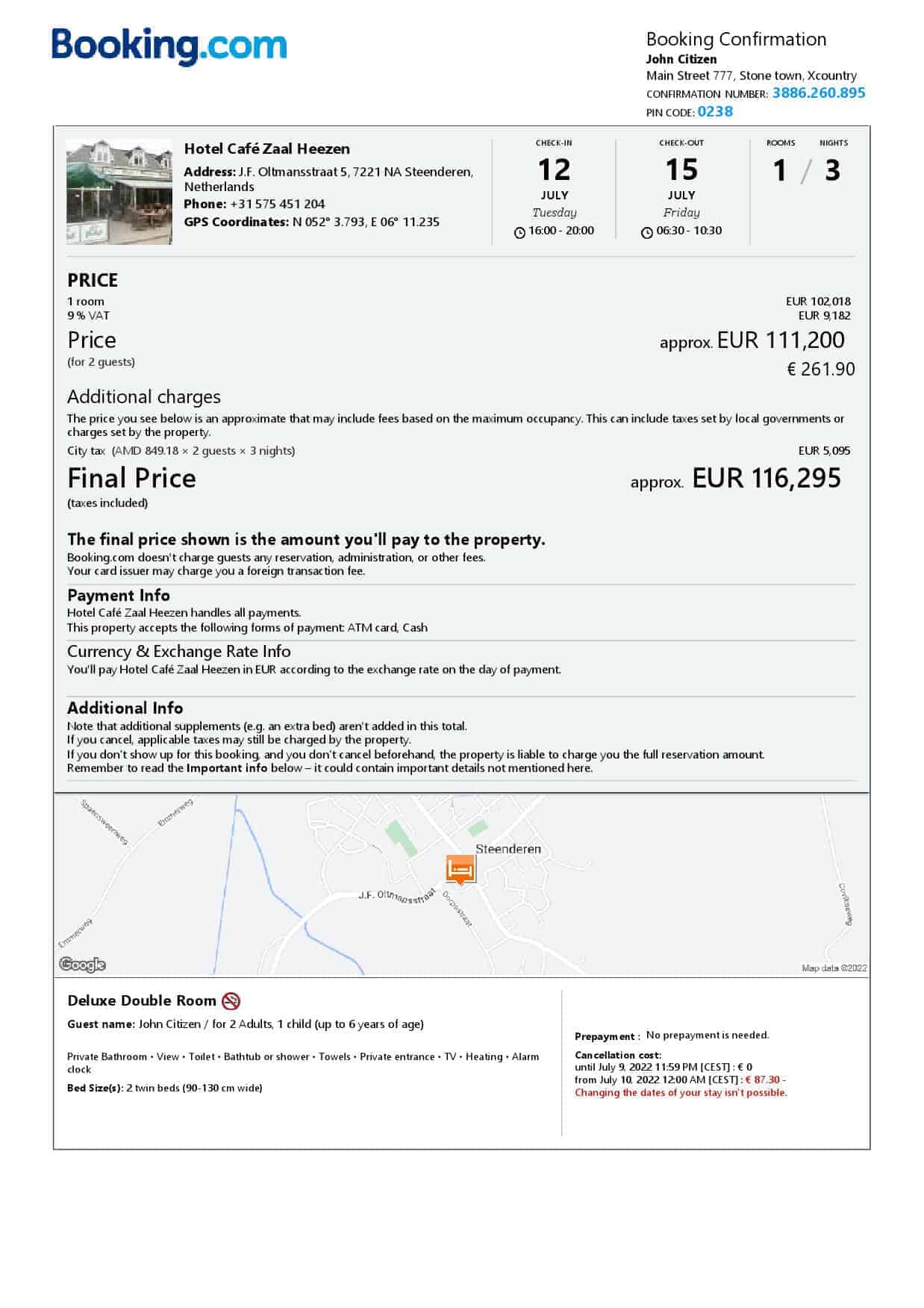 Are you in need of a hotel or Airbnb booking confirmation for your needs? Look no further! Mr. Verify’s editable templates are perfect for providing proof of accommodation and showing expenses, making the fake booking process even more authentic and reliable. Our templates come in both Word and PDF formats, and are available for almost all countries. With our Netherlands country name fillable booking form templates, you can easily customize your booking confirmation to fit your specific needs, saving you time and hassle. And if you need any help with editing or construction works, our specialists are ready to assist you at affordable prices. Our support team is also available online to answer any questions you may have.
