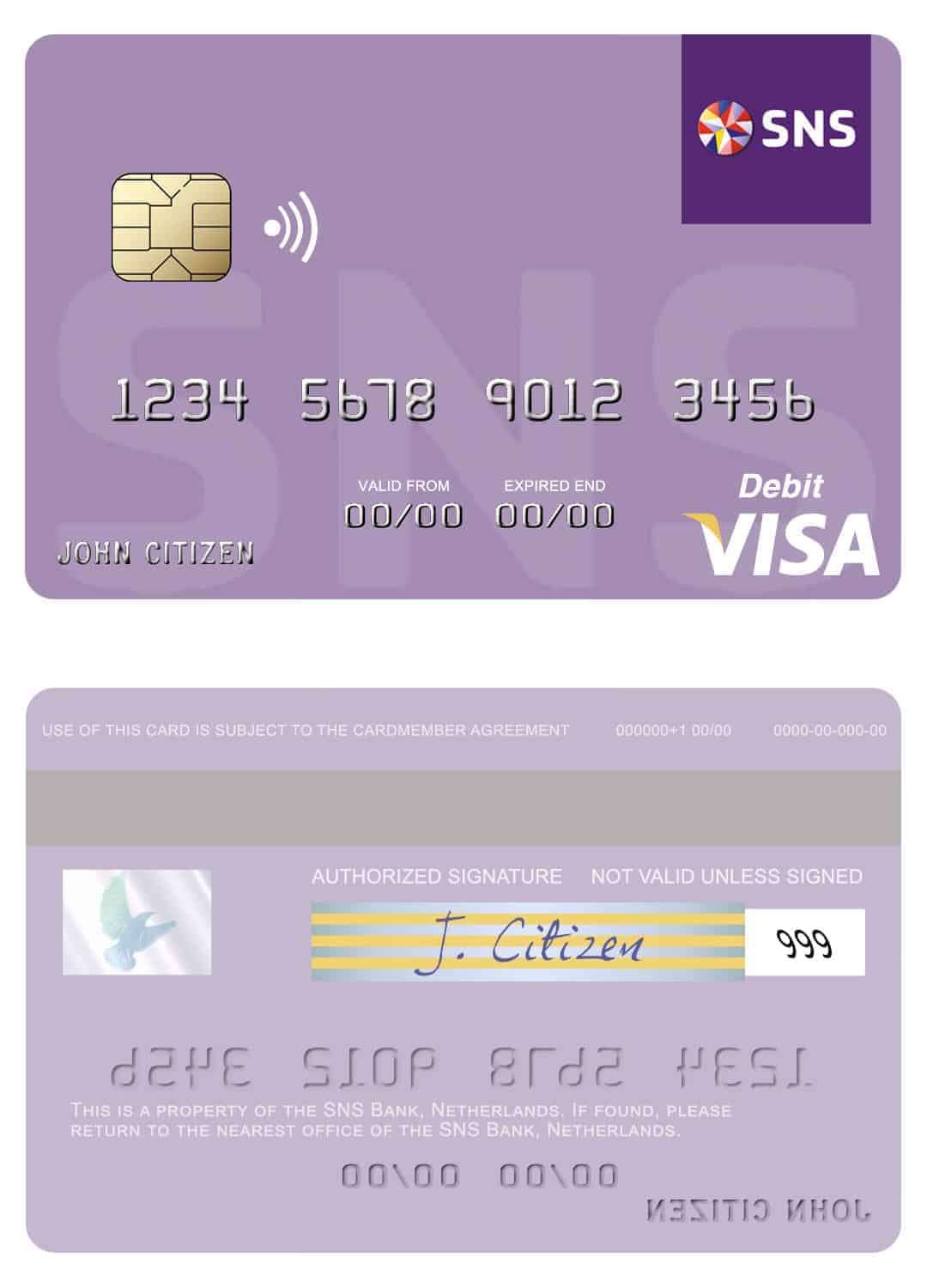 What is a Netherlands SNS Bank visa debit card Template?