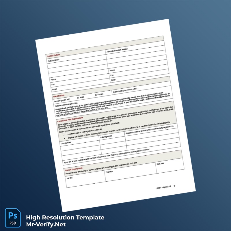 Streamline Your Dental Registration Process with Our New Zealand Dental Registration Exam Application Form Template
