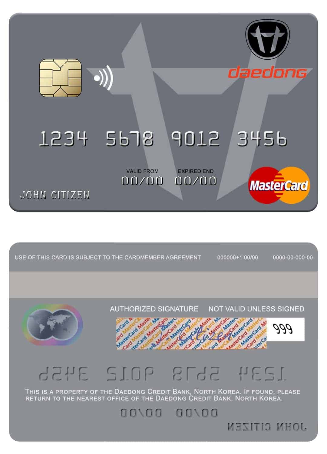 Our editable North Korea Daedong Credit Bank mastercard templates offer several benefits: