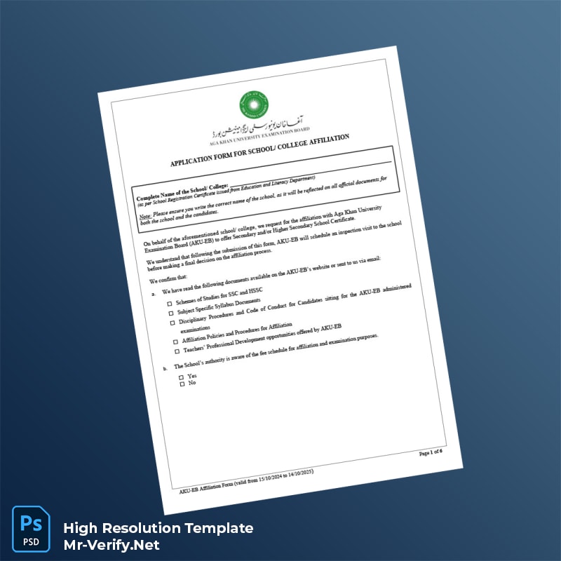 Streamline Your Registration Process with the Pakistan Aga Khan University Examination Board Affiliation Form Word and PDF Template