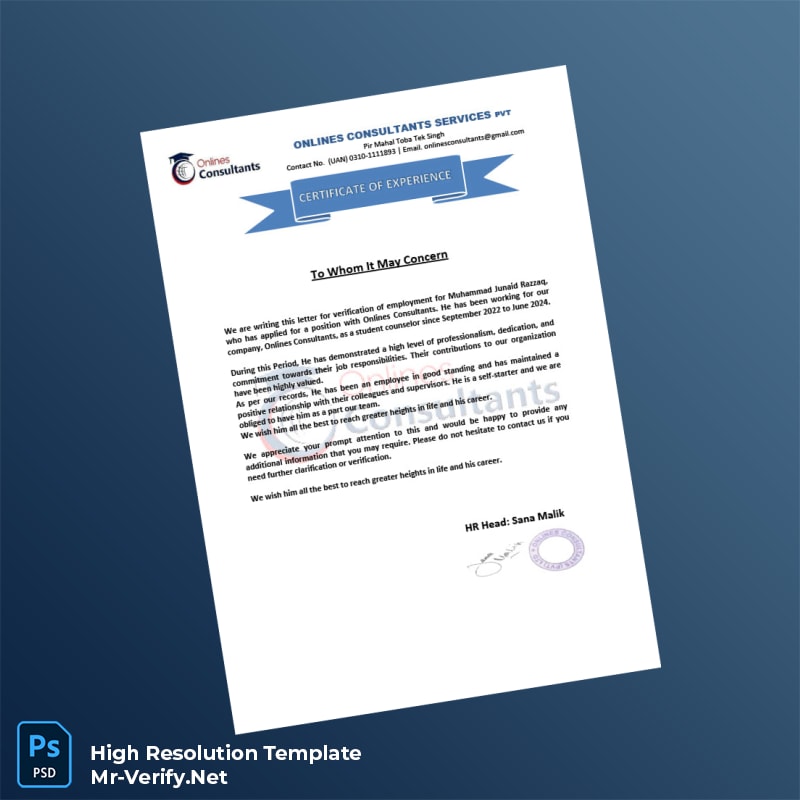 For professionals needing a reliable and editable document to confirm employment status, the Pakistan Onlines Consultants Employment Verification Letter Word and PDF Template offers a seamless solution. Crafted to assist HR teams, consultants, and individuals alike, this template simplifies the creation of official employment certificates in both Word and PDF formats, providing flexibility and professional quality. Whether you’re replacing a lost certificate, updating outdated records, or satisfying new verification requirements, this tool is designed to meet your needs promptly.