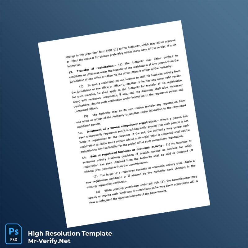 Discover the ultimate solution to quickly and professionally manage your official business documents with the Pakistan Punjab Revenue Authority Registration Certificate Word and PDF Template. Designed for entrepreneurs, legal consultants, and administrative professionals, this fully editable registration certificate template ensures that your company registration documents are accurate, compliant, and always ready when needed.
