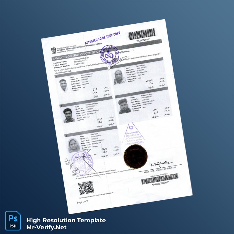 Elevate your documentation process today with the Pakistan Registrar General Family Registration Certificate Word and PDF Template and experience unparalleled convenience and professionalism in family registration management.