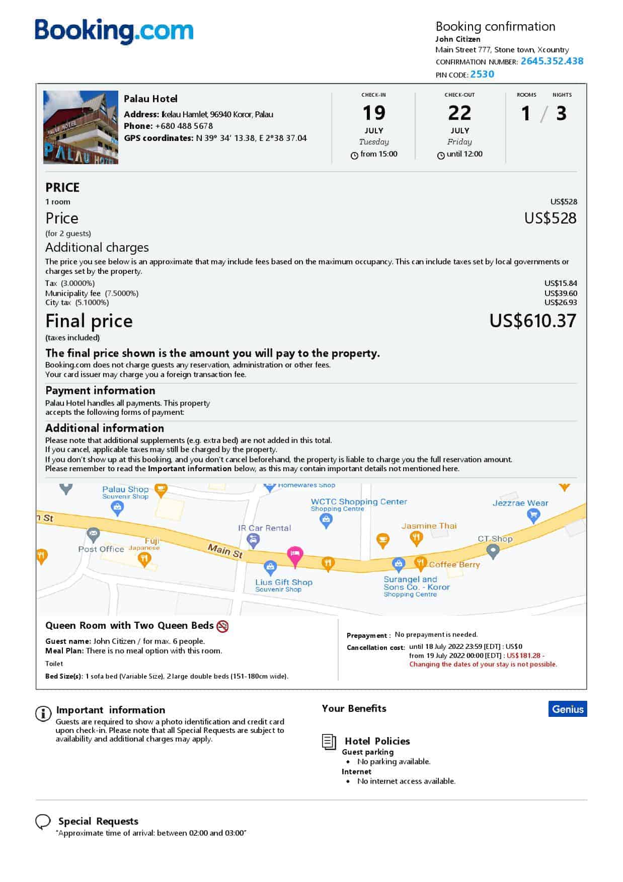 Are you in need of a hotel or Airbnb booking confirmation for your needs? Look no further! Mr. Verify’s editable templates are perfect for providing proof of accommodation and showing expenses, making the fake booking process even more authentic and reliable. Our templates come in both Word and PDF formats, and are available for almost all countries. With our Palau country name fillable booking form templates, you can easily customize your booking confirmation to fit your specific needs, saving you time and hassle. And if you need any help with editing or construction works, our specialists are ready to assist you at affordable prices. Our support team is also available online to answer any questions you may have.