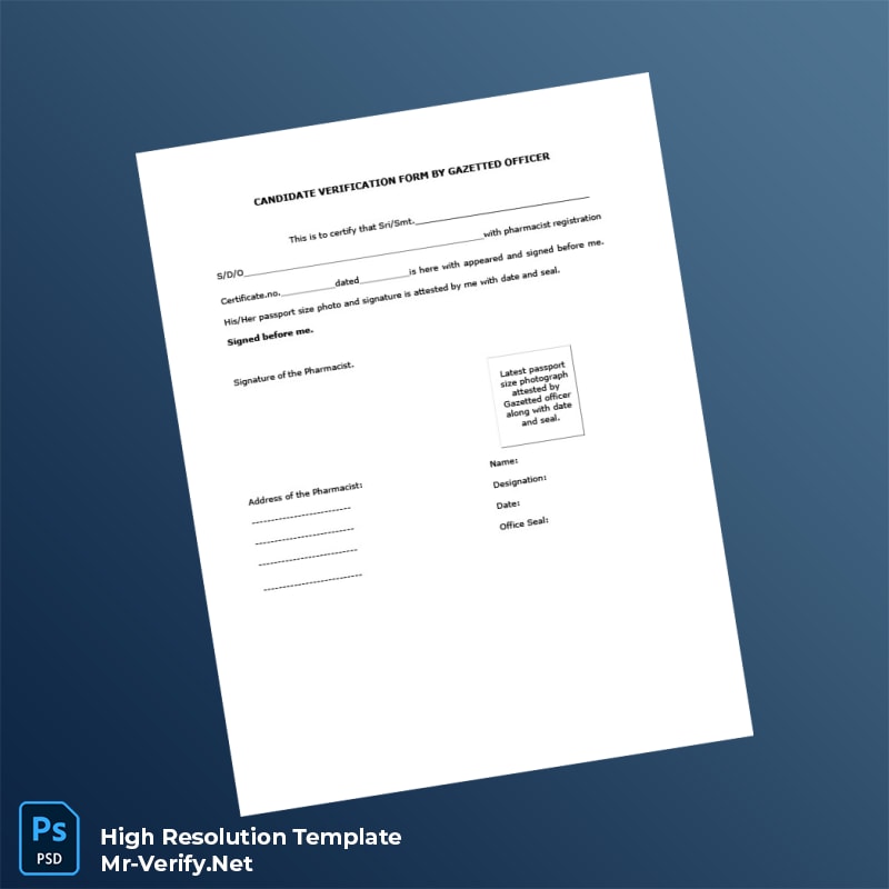 Pharmacist Verification Form Word and PDF Template for fast, professional, and editable registration certificates. Download and customize instantly.