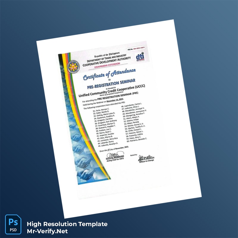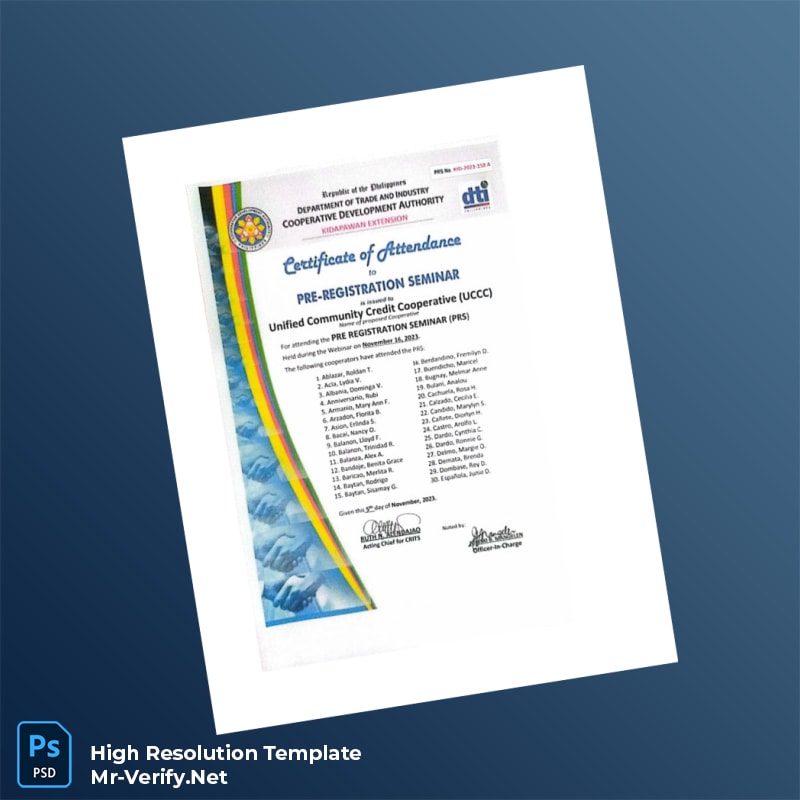 Philippines Cooperative Development Authority Certificate of Attendance Word and PDF Template