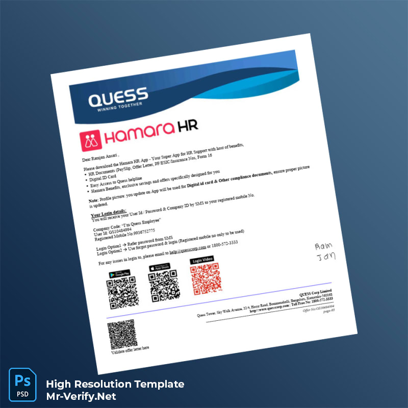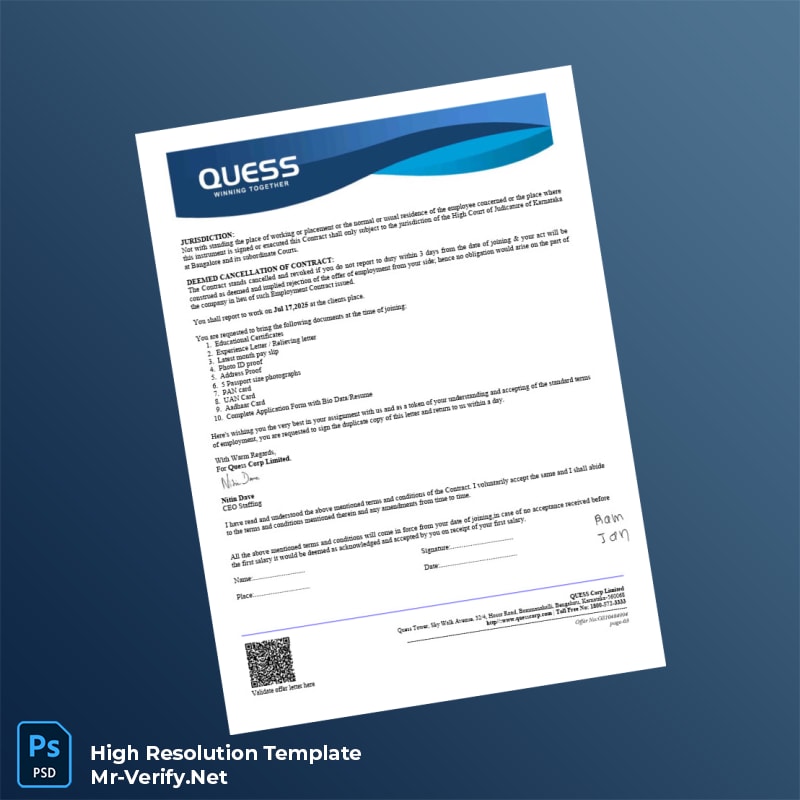 Empower your HR and administrative operations with the Quess Corporation Employment Verification Letter Word and PDF Template. Streamline your verification processes and deliver results with professionalism and ease. Download now and transform the way you handle employment confirmation documentation.