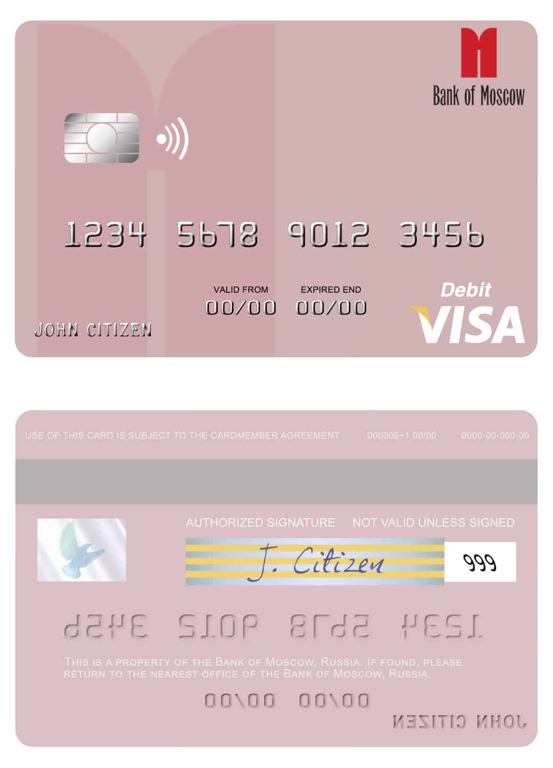 Do you want to use a fillable visa debit card that truly reflects your authority and is realistic? Look no further! Our customizable Russia Bank of Moscow visa debit card templates in PSD format are the perfect solution.