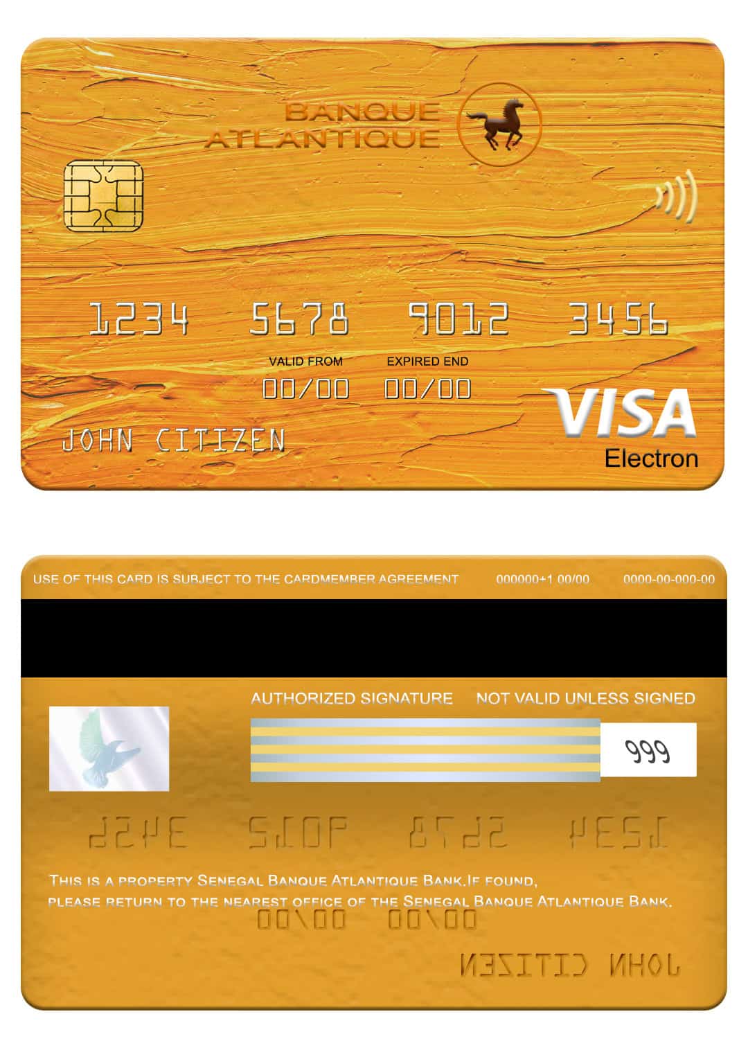 Do you want to use a fillable visa electron card that truly reflects your authority and is realistic? Look no further! Our customizable Senegal Banque Atlantique Bank visa electron card templates in PSD format are the perfect solution.