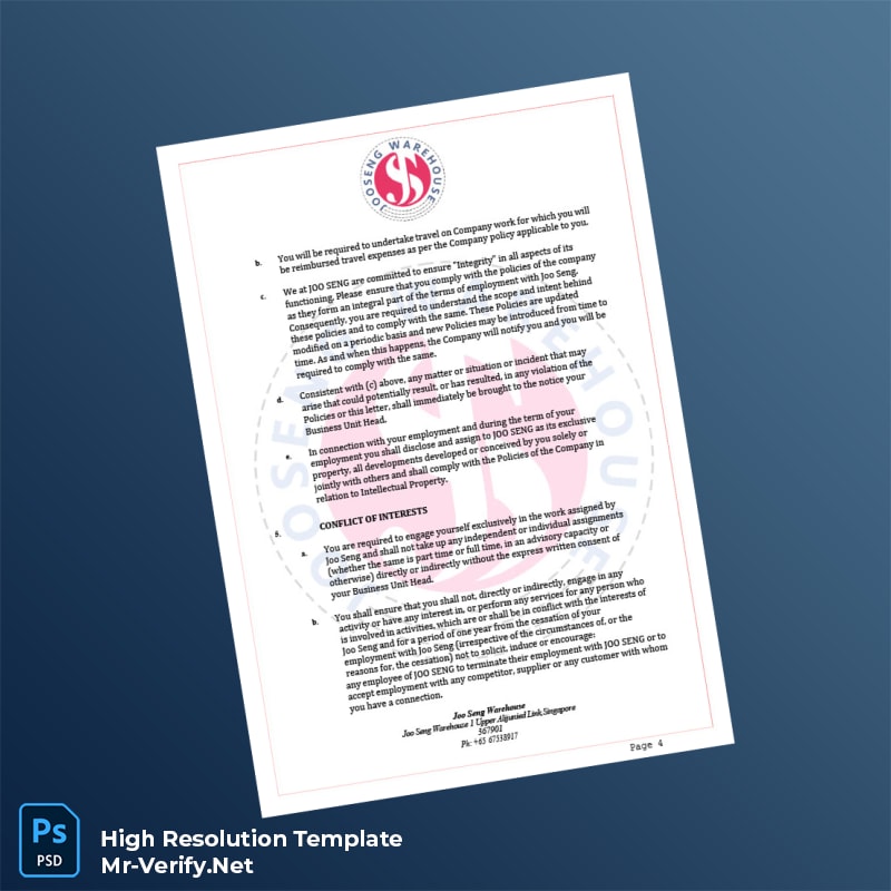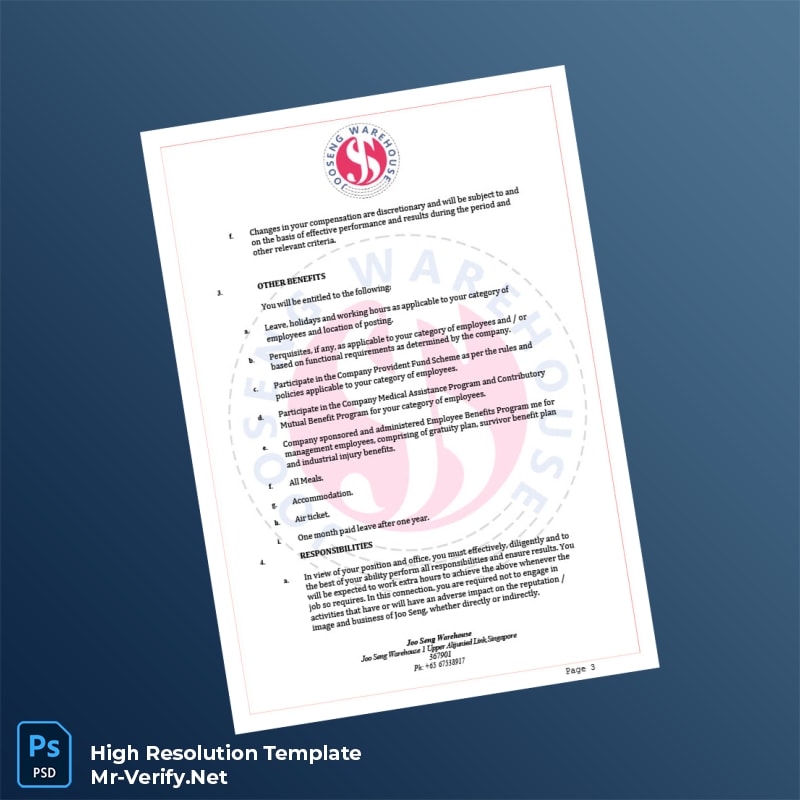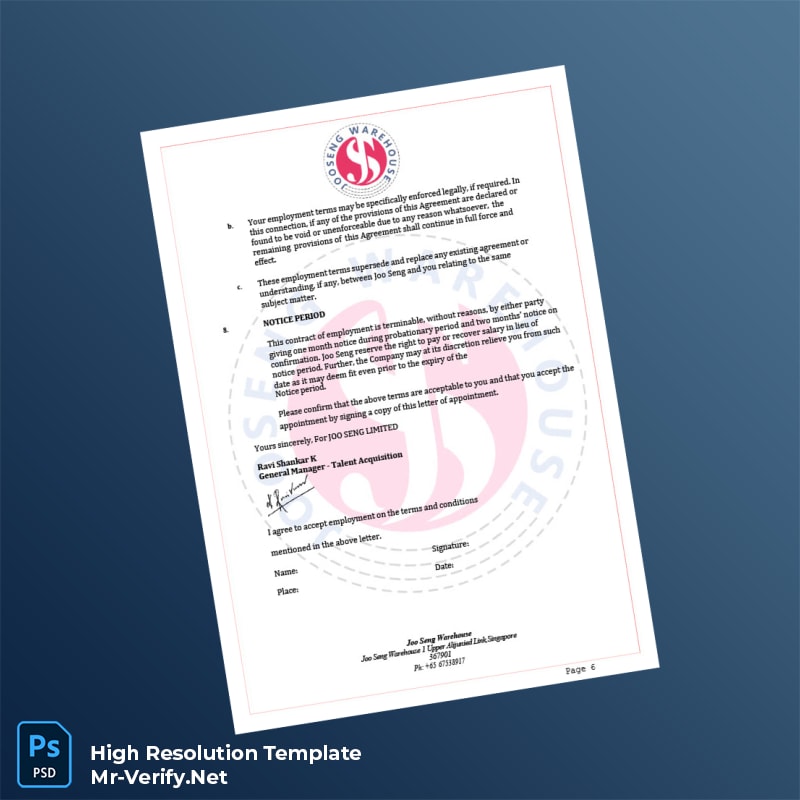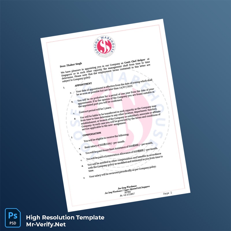 Streamline Your Employment Verification with Our Singapore Joo Seng Warehouse Employment Verification Letter Word and PDF Template