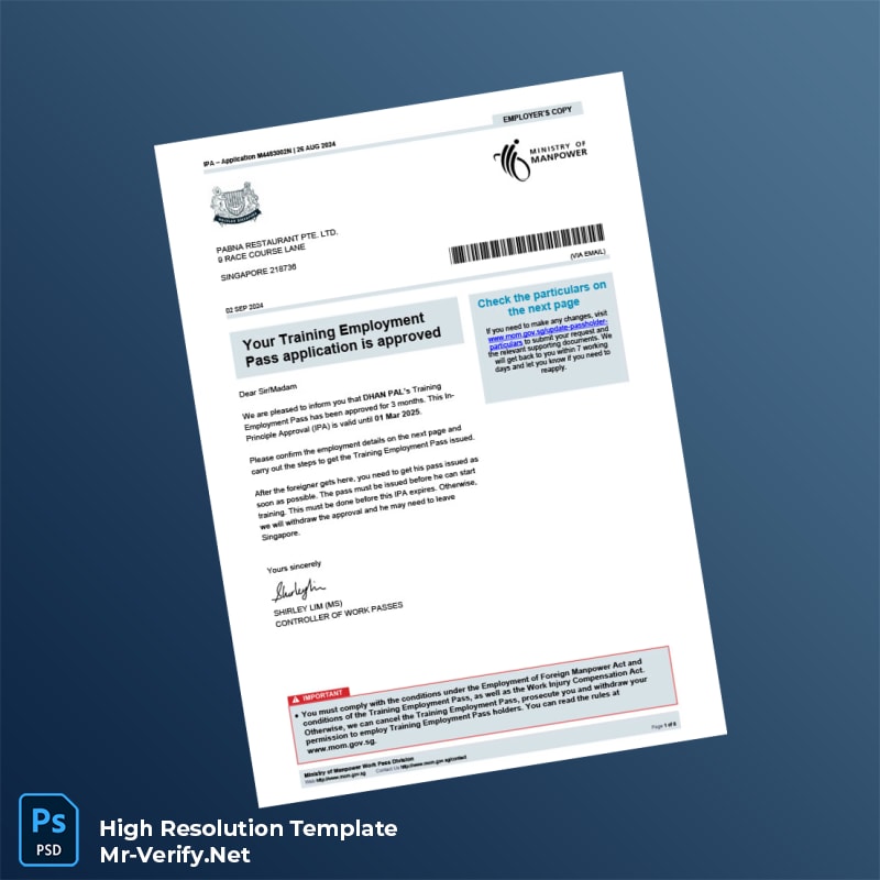 Streamline Your Employment Verification Process with the Singapore Pabna Restaurant Pte Ltd Employment Verification Letter Word and PDF Template