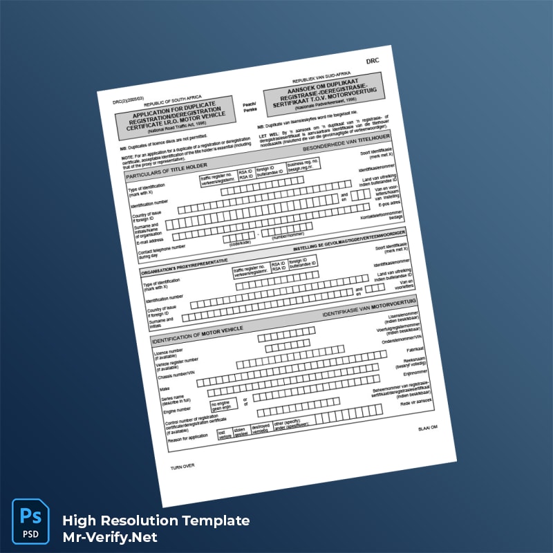 Get the South Africa Motor Vehicle Registration Duplicate Certificate Application Form Word and PDF Template for fast, editable registration certificate replacement.