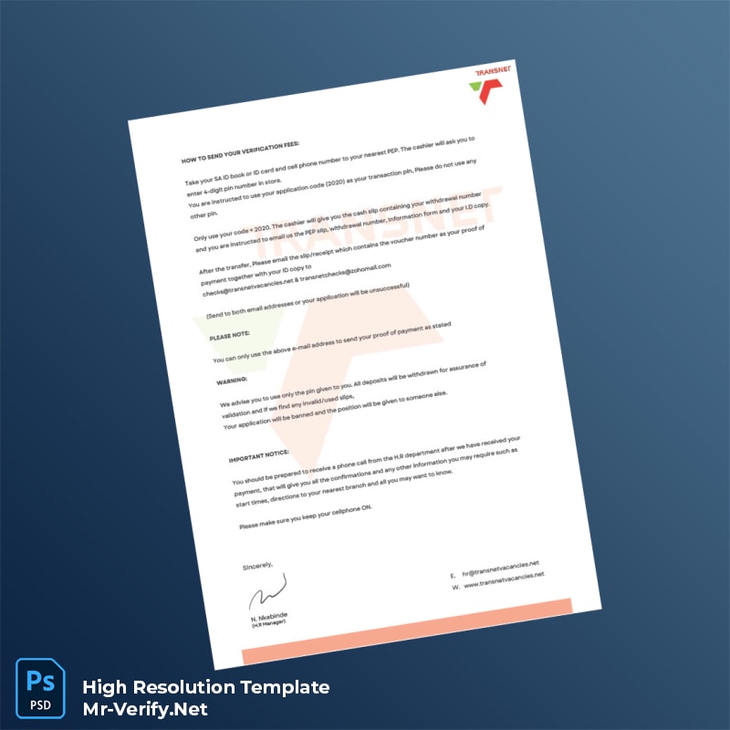 Unlock hassle-free verification with a professionally designed, editable employment verification letter template tailored for South African employment scenarios. Don’t let missing or delayed documents hold back your professional progress. Download the South Africa Transnet Employment Verification Letter Word and PDF Template now and create your precise proof of employment letter in moments.