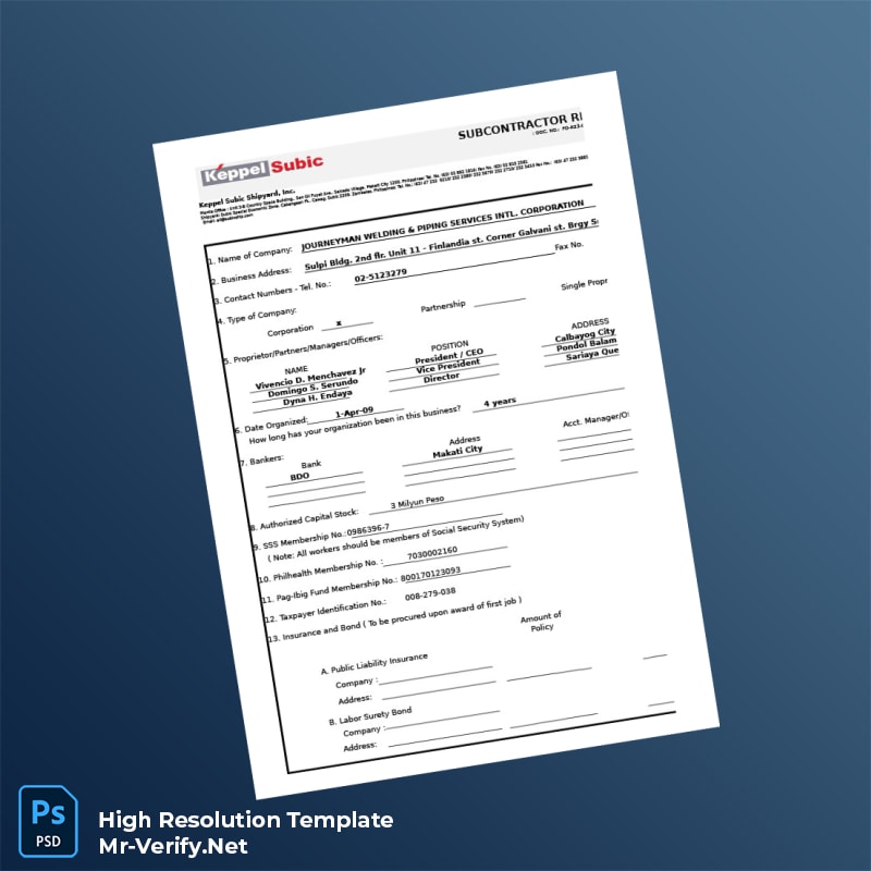Subcontractor Registration Form Word and PDF Template: Streamline Your Business Compliance