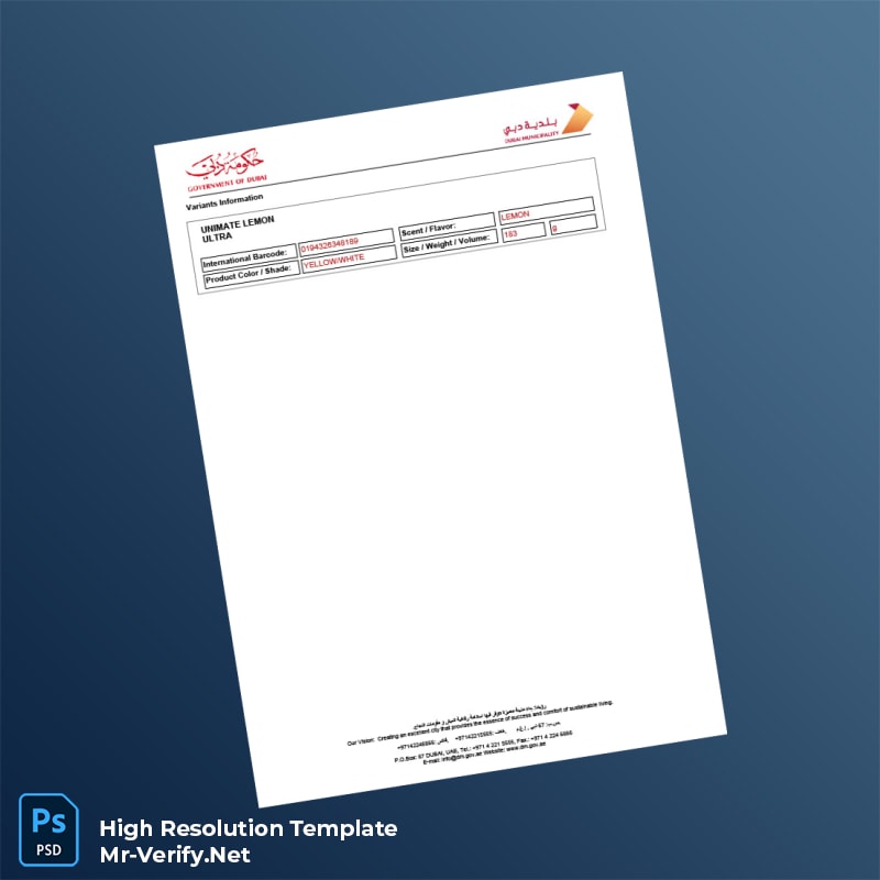 Editable UAE Consumer Products Registration Certificate Word and Pdf Template 2 page