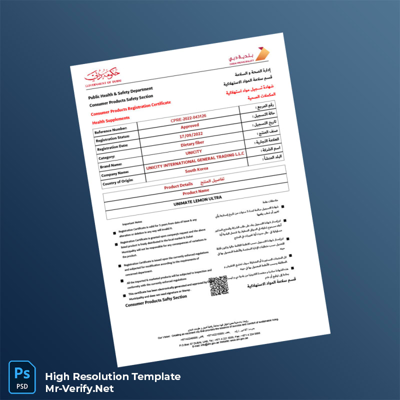 Be the first to review “Editable UAE Consumer Products Registration Certificate Word and Pdf Template 2 page”