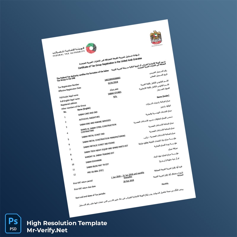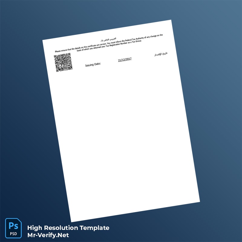 Effortlessly manage your business registration needs with our expertly crafted UAE Federal Tax Authority Tax Registration Certificate Word and PDF Template. Designed for busy professionals who require an immediate and reliable solution to replace lost or expired documents, this template guarantees seamless editing and professional presentation.