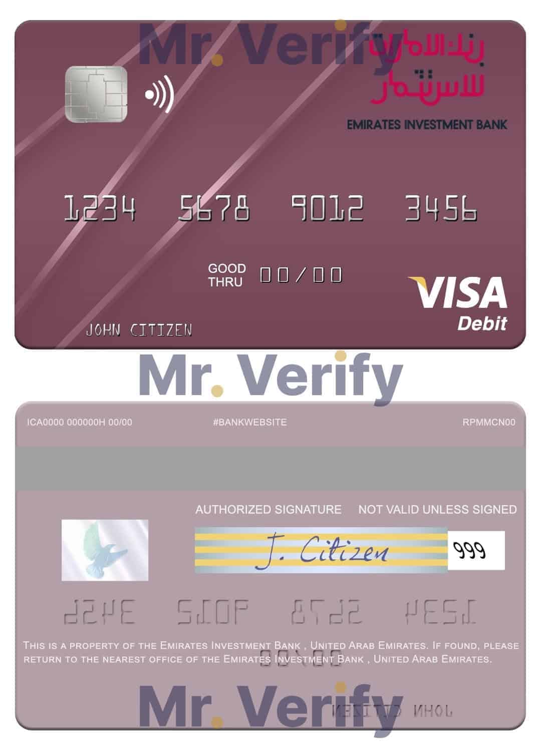Editable United Arab Emirates Emirates Investment Bank visa debit card Templates in PSD Format