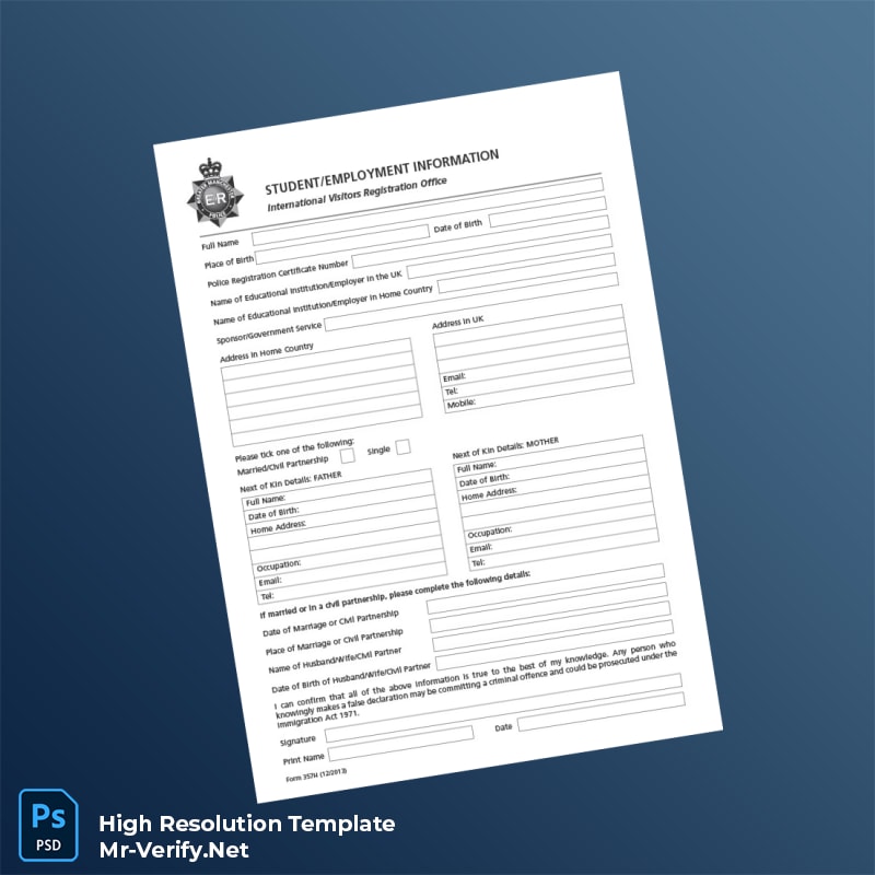 United Kingdom International Visitors Registration Office Registration Information Form Word and PDF Template