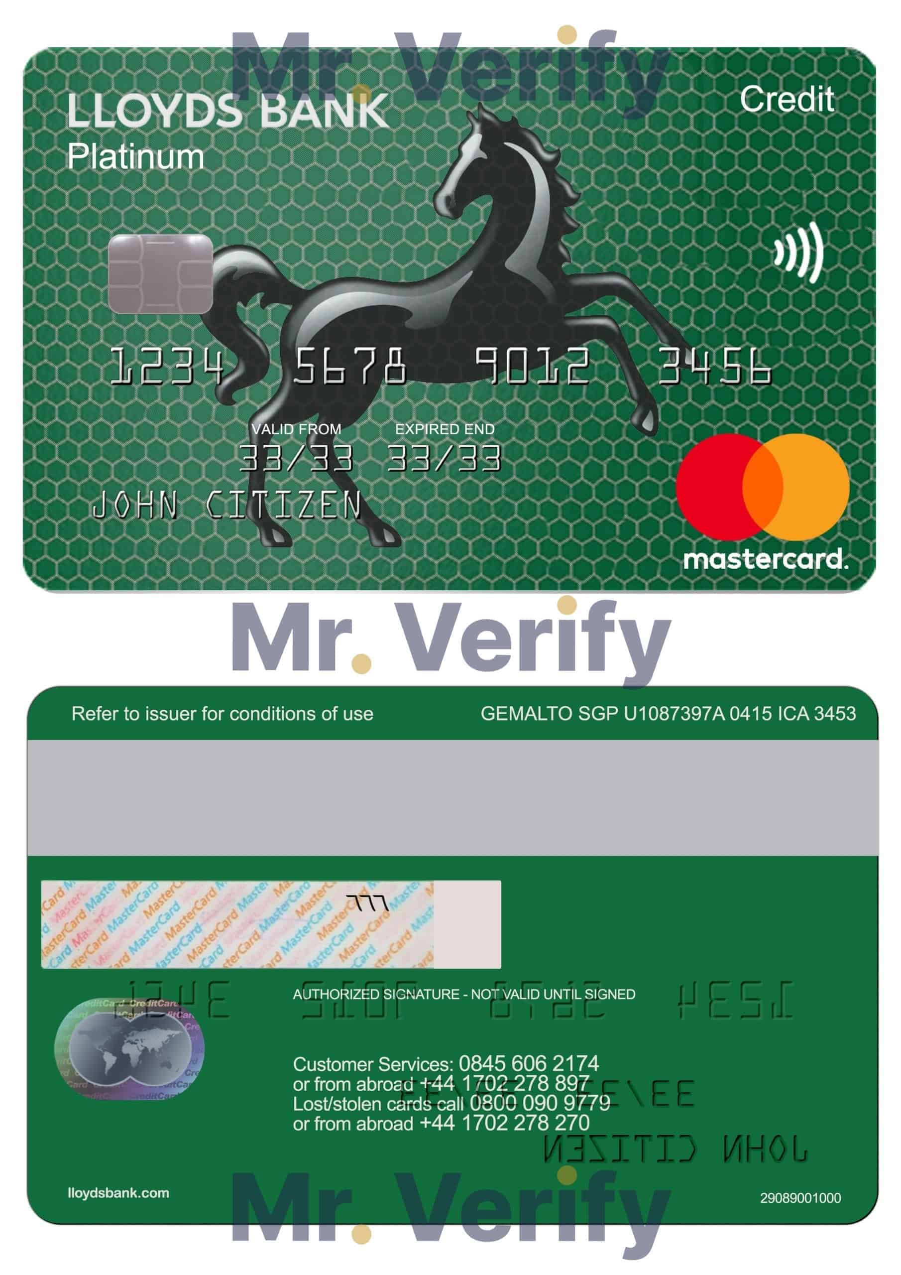 Editable United Kingdom Lloyds platinum mastercard Templates in PSD Format
