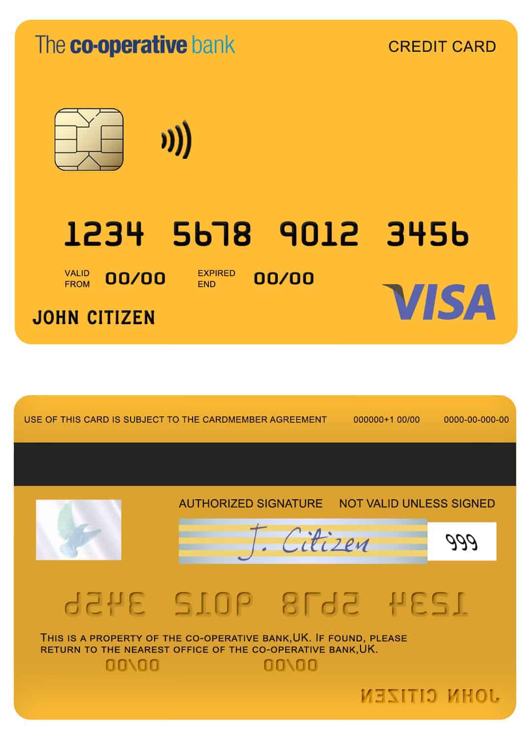 Our editable United Kingdom The Co-operative bank visa credit card templates offer several benefits: