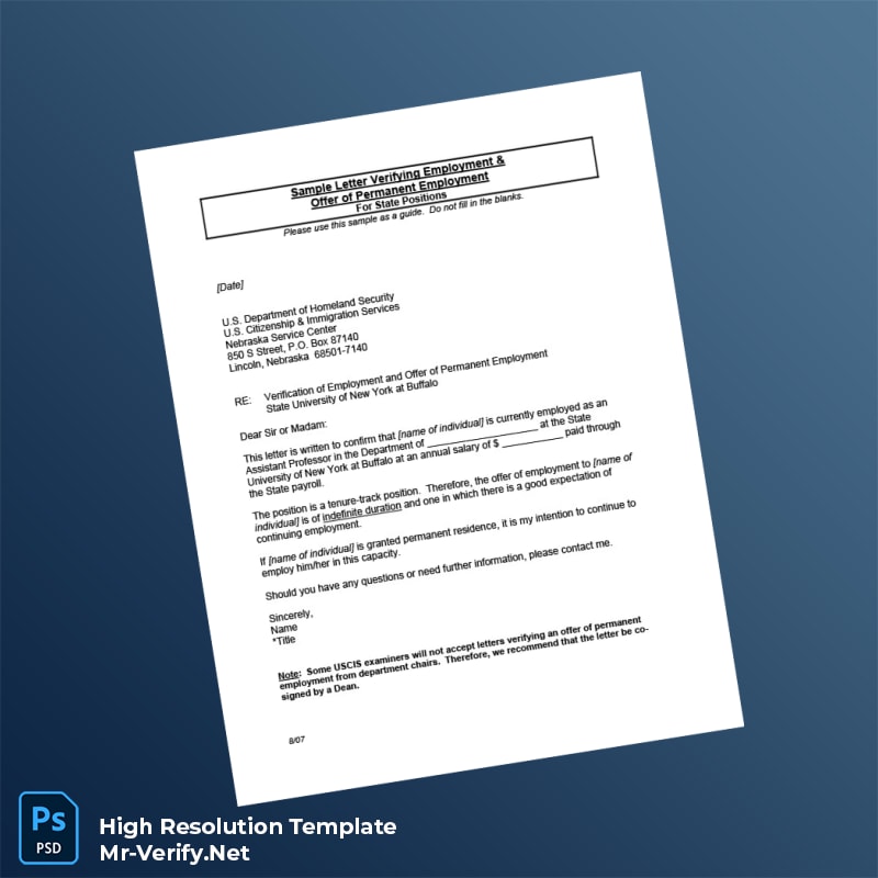 Don’t let outdated or missing documents hinder your professional processes. Invest in the United States State University of New York at Buffalo Employment Verification Letter Word and PDF Template to confidently manage your verification tasks. Upgrade to a seamless, reliable method trusted by countless HR professionals and administrative personnel worldwide.