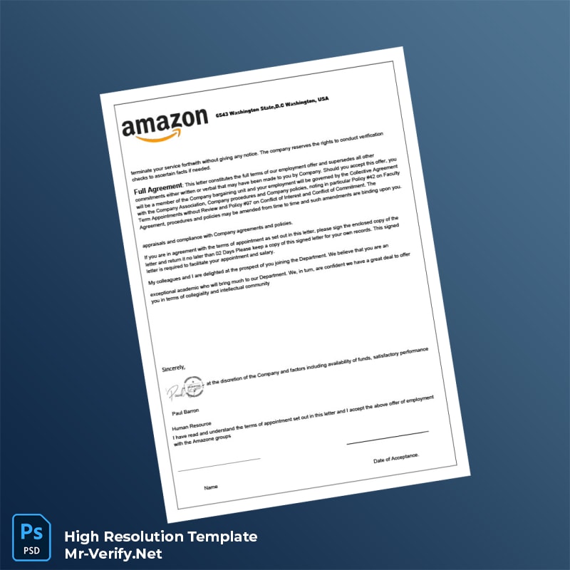 Streamline Your Employment Verification Process with Our USA Amazon Job Verification Letter Word and PDF Template