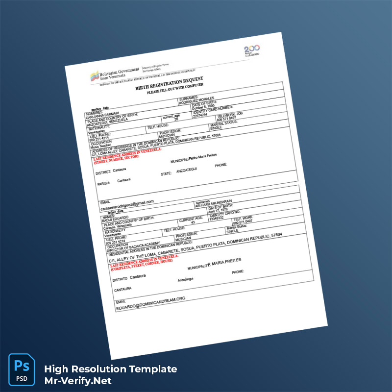 Effortlessly manage birth registrations using the Venezuela Embassy Birth Registration Certificate Word and PDF Template. Crafted for accuracy and ease, this editable registration certificate template empowers professionals and individuals alike to update and customize essential birth record details with confidence.