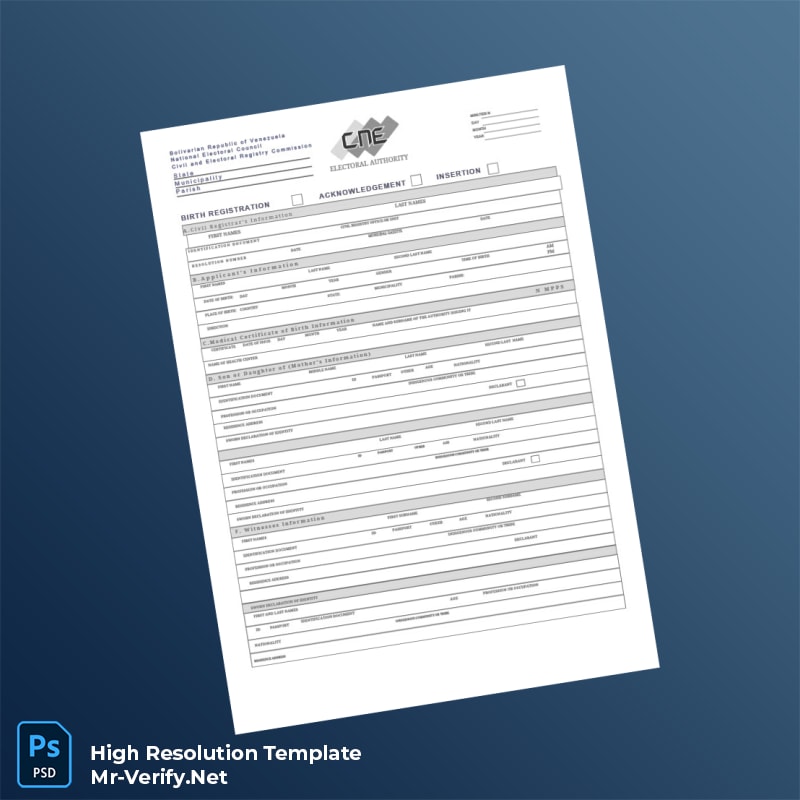 Effortlessly Secure Your Vital Records with the Venezuela National Electoral Council Birth Registration Certificate Word and PDF Template