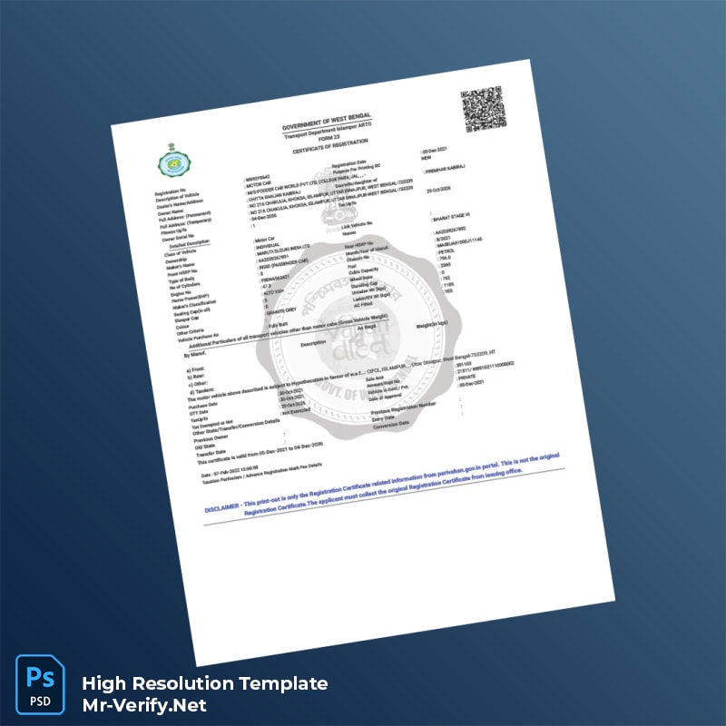 Effortlessly create and customize your business registration documents using the West Bengal Transport Department Certificate of Registration Word and PDF Template. Designed for professionals who need quick replacements or updated forms, this template delivers precision and ease for all your registration certificate needs.