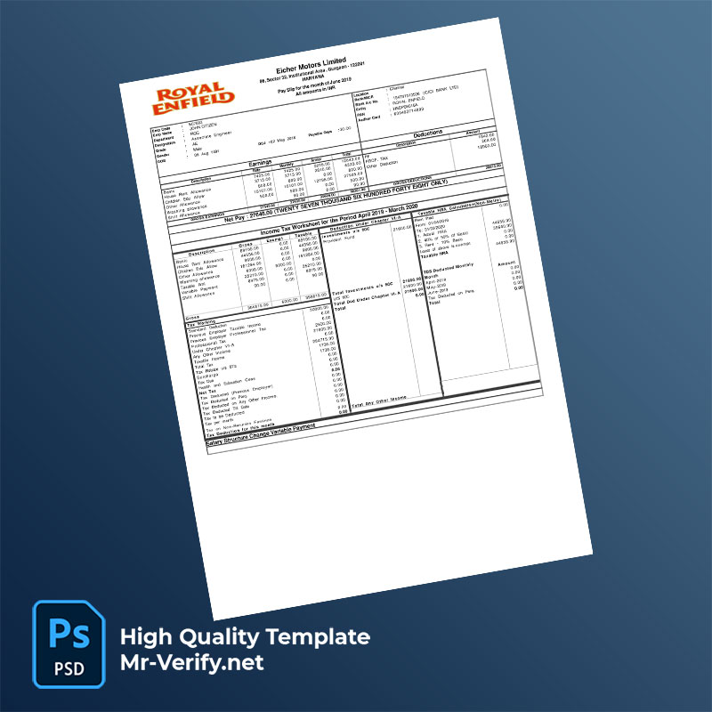 Eicher Motors Limited payslip word and pdf template