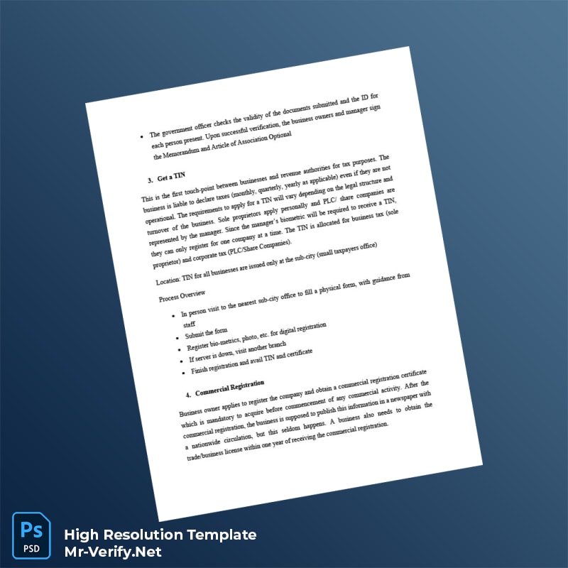 Streamline Your Business Registration Process with the Ethiopia Business Registration Certificate Word and PDF Template