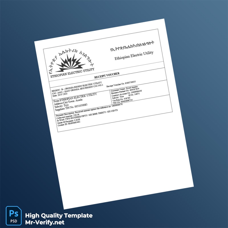 Easily address your professional needs with the Ethiopia Ethiopian Electric Utility Editable Utility Bill Template available in both Word and PDF formats. Designed for those requiring a practical and efficient solution to proof of address needs, our template is perfect for anyone who has lost their original document, needs a replacement quickly, or seeks a flexible solution for administrative tasks.
