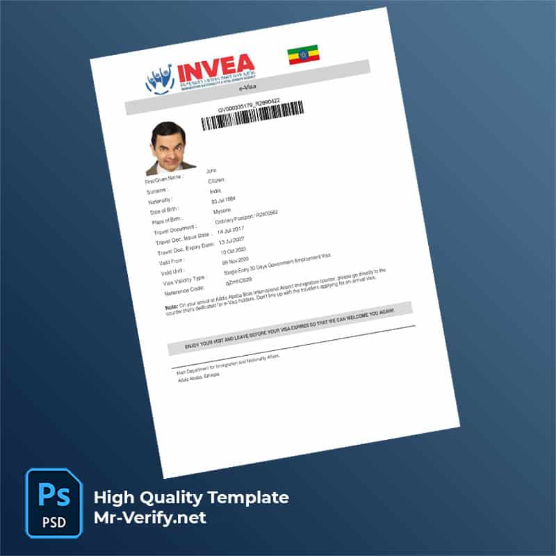 “The Ethiopia eVisa template I purchased was incredibly realistic and easy to customize. I used it for a mock immigration scenario, and it worked perfectly.” – Marcus T.