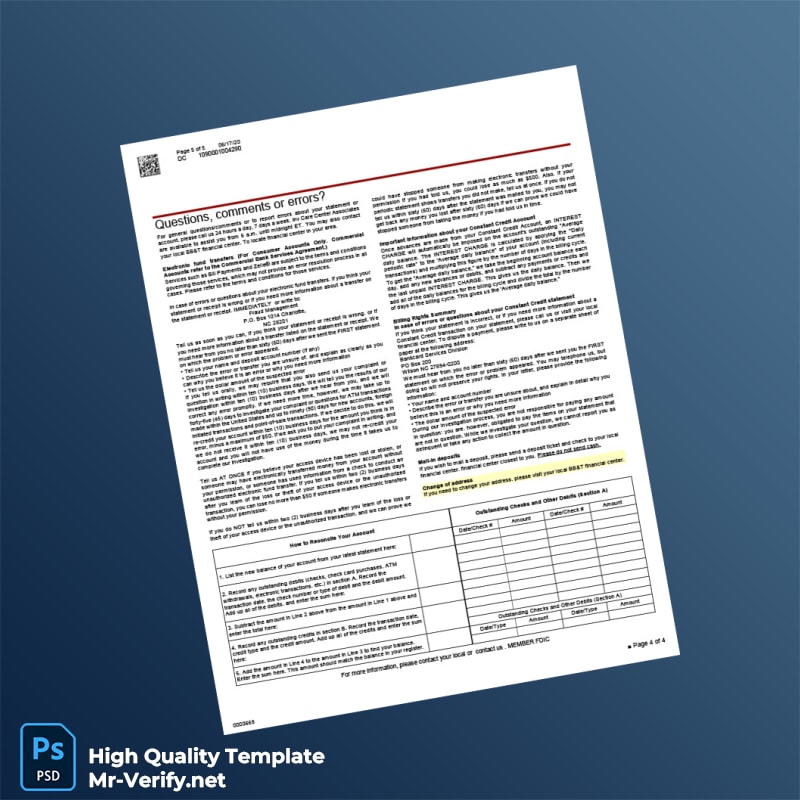 EUR BBT Bank Statement Template in Word and PDF formats 4 page