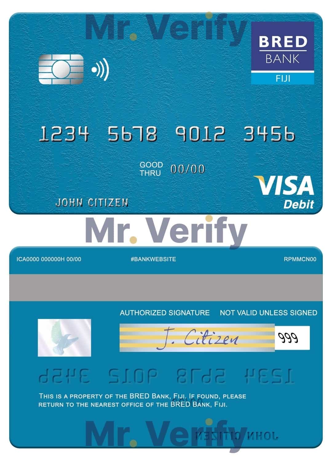 Fillable Fiji BRED Bank visa debit credit card Templates | Layer-Based PSD