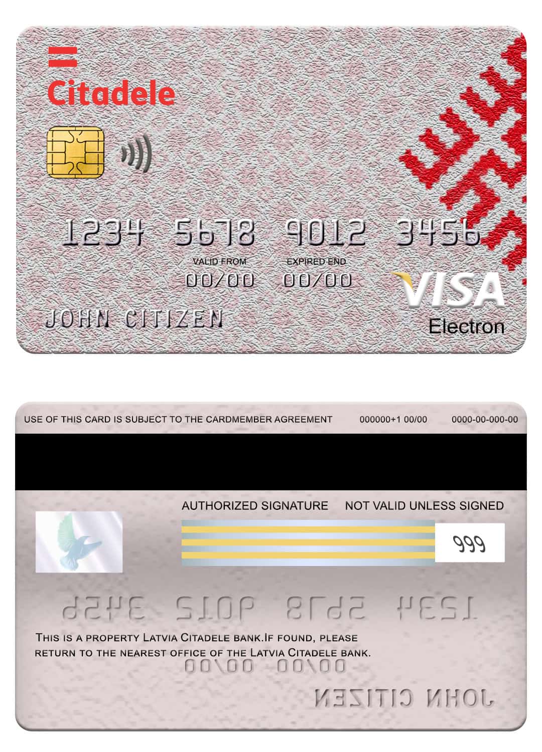Fillable Latvia Citadele bank visa electron card Templates | Layer-Based PSD