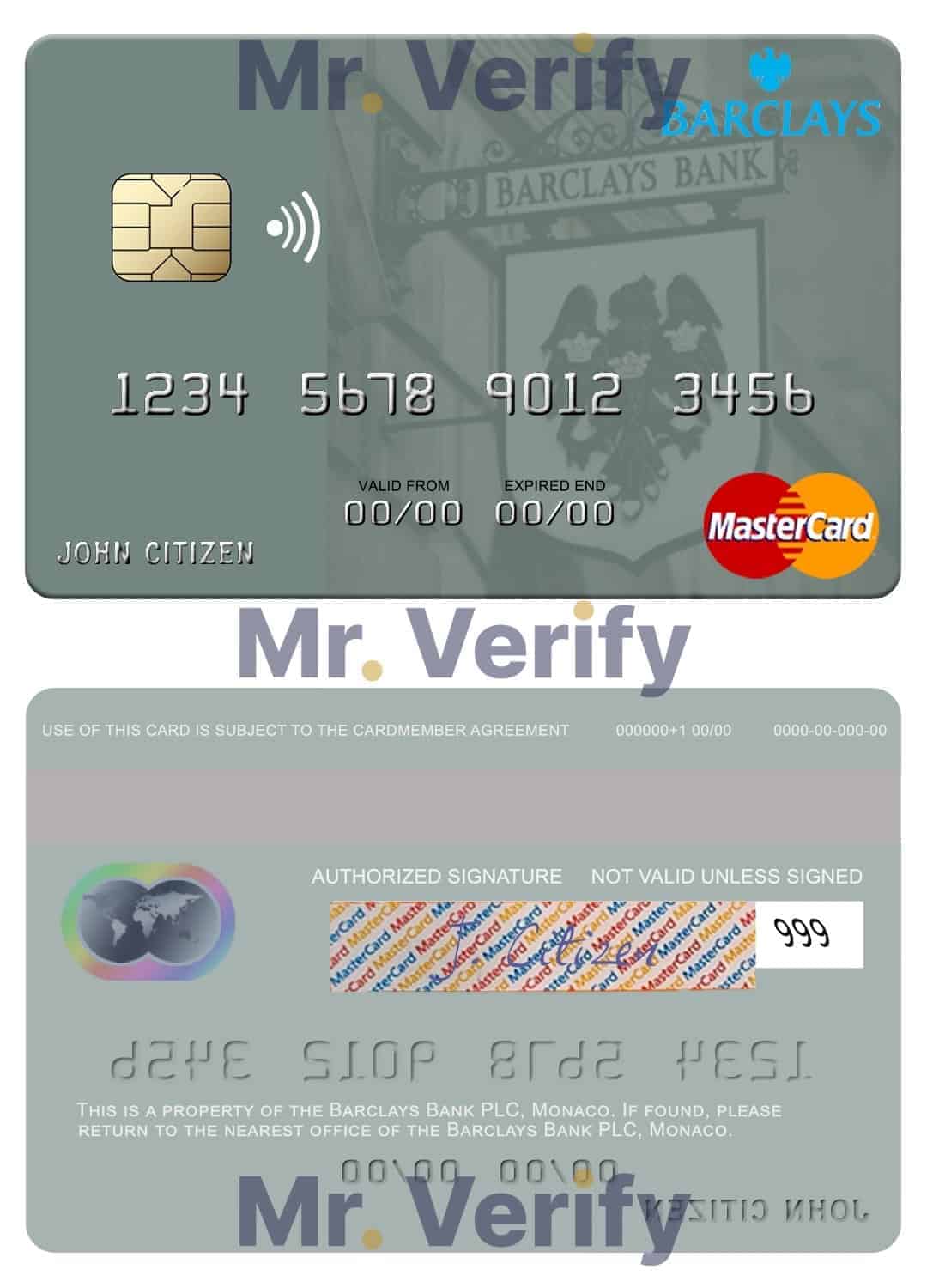 Fillable Monaco Barclays Bank PLC bank mastercard Templates | Layer-Based PSD