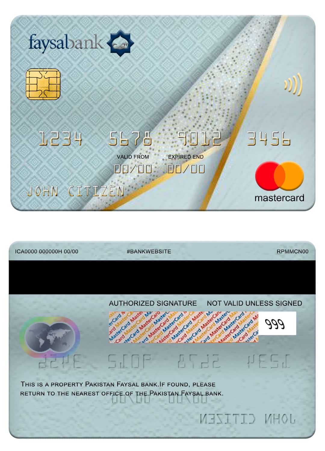 Our Pakistan Faysal bank mastercard PSD templates are user-friendly and come with well-organized layers, making customization a hassle-free process for both designers and non-designers. With our templates, you can create custom mastercards that suit your needs and preferences, without the need for advanced design skills or software.