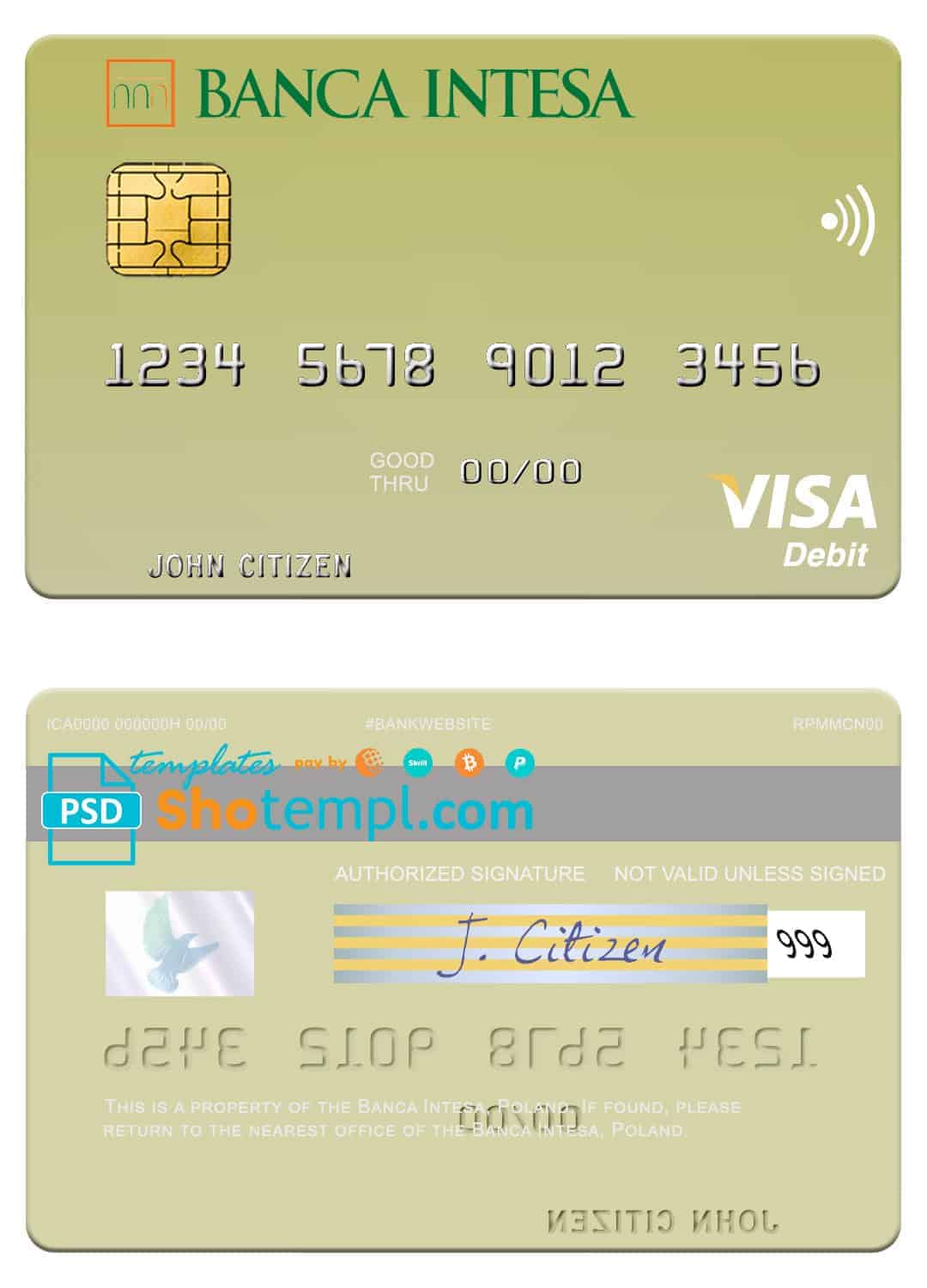 Our Poland Banca Intesa visa debit card PSD templates are user-friendly and come with well-organized layers, making customization a hassle-free process for both designers and non-designers. With our templates, you can create custom visa debit cards that suit your needs and preferences, without the need for advanced design skills or software.