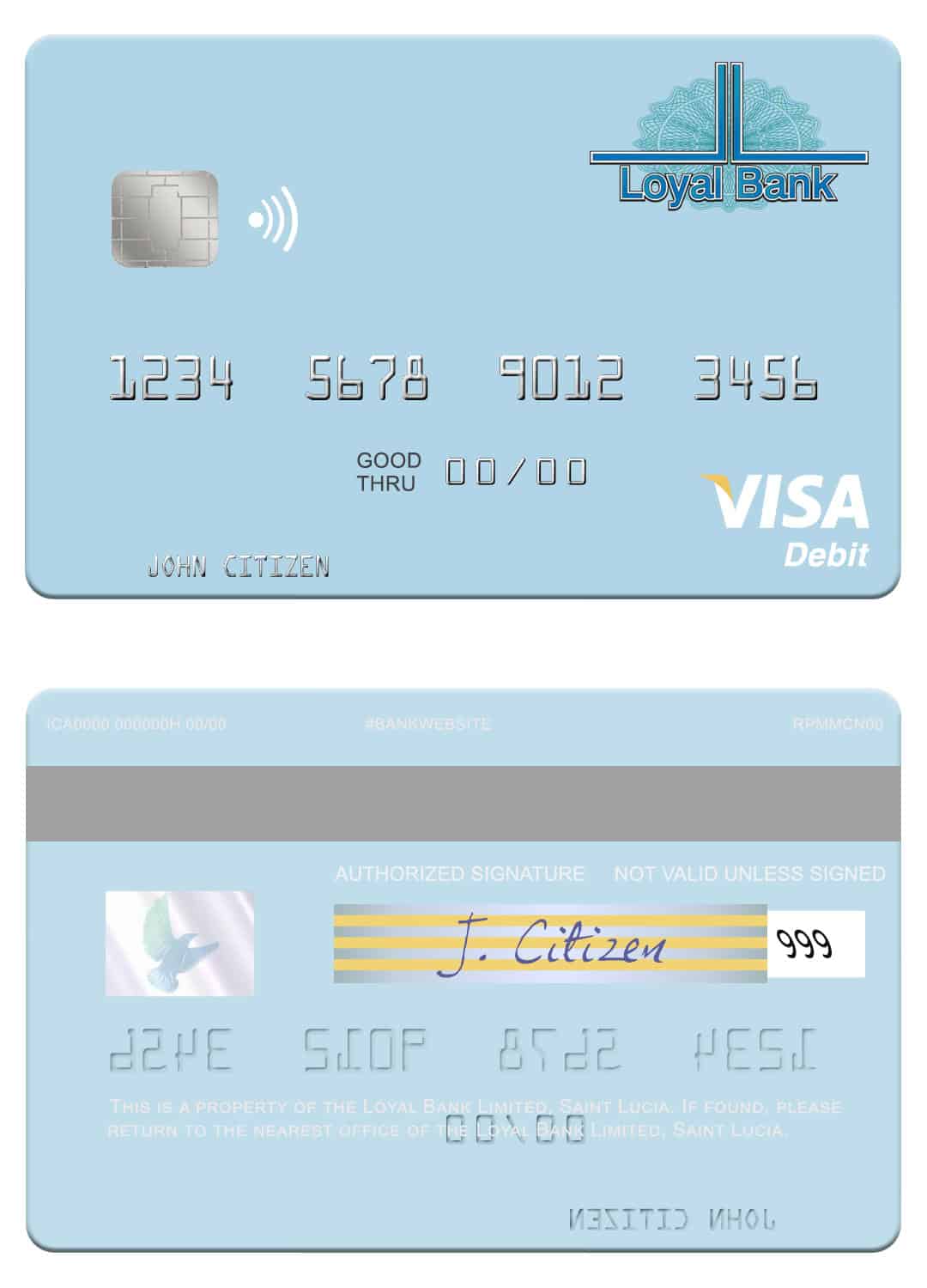 Fillable Saint Lucia Loyal Bank Limited visa debit card Templates | Layer-Based PSD